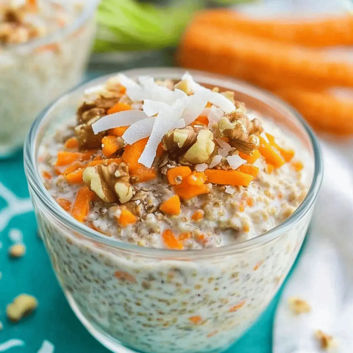 Jump to Recipe Print RecipeAs I sat with my morning coffee, the aroma of baked goods wafted through my kitchen, reminding me of my favorite dessert: carrot cake. Inspired, I crafted a recipe that captures all the essences of that sweet nostalgia without the fuss of baking. Enter my Vegan Carrot Cake Overnight Oats—your new go-to for a healthy breakfast that’s not only no-cook but also exceptionally easy to whip up. These oats are a delightful blend of creamy texture and irresistible flavor, bringing the joy of carrot cake right to your breakfast table. They make mornings easier by requiring minimal prep time while ensuring you kickstart your day with wholesome, nourishing ingredients. Who knew a breakfast could taste so good and be so good for you? Are you ready to dive into a new breakfast routine that’s both satisfying and delicious? Why Choose Carrot Cake Overnight Oats? Flavorful Inspiration: These oats pack the delightful taste of carrot cake in every spoonful, making breakfast a treat! No-Cook Convenience: With minimal effort required, you can prepare them the night before and enjoy a hassle-free morning. Healthy Goodness: Featuring wholesome ingredients like chia seeds and almond milk, they provide a nutritious start to your day. Versatile Delight: Customize your bowls with toppings like fresh berries or nut butters for an added burst of flavor. Vegan & Gluten-Free: Perfect for those with dietary restrictions, ensuring everyone can indulge in this satisfying breakfast option. Meal Prep Friendly: Store extra servings in the fridge for up to three days, making it a smart choice for busy mornings. So why not transform your breakfast routine with these Vegan Carrot Cake Overnight Oats? Enjoy them on their own or pair them with a slice of Decadent Chocolate Cake for a truly special morning! Carrot Cake Overnight Oats Ingredients • Dive into the deliciousness of Carrot Cake Overnight Oats with these wholesome components! For the Oats Grated Carrot – Adds natural sweetness and a pop of color; switch to shredded zucchini for a twist. Rolled Oats – The hearty base that provides texture; instant oats can be used for quicker meals. Chia Seeds – Provide thickness and packed with omega-3s; flaxseeds are a suitable alternative. Almond Milk – Creamy liquid to soak oats; any plant-based milk like soy or oat works too! Natural Vanilla Extract – Elevates the flavor; consider using almond or maple extract for a different sweetness. Ground Cinnamon – Delivers warming spice notes; feel free to experiment with nutmeg or ginger for richness. Agave or Maple Syrup – Sweetener to taste; for non-vegan options, use honey instead. For the Toppings Chopped Walnuts – Adds a satisfying crunch and healthy fats; substitute with pecans or almonds as preferred. Coconut Flakes – Infuses a tropical vibe; skip it or use raw coconut for a fresher taste. Enjoy crafting these Vegan Carrot Cake Overnight Oats and savor a breakfast that delights the senses while nourishing the body! Step‑by‑Step Instructions for Carrot Cake Overnight Oats Step 1: Prepare the Base In a large mixing bowl, combine the grated carrot, rolled oats, chia seeds, and your choice of almond milk. Stir gently to ensure everything is evenly distributed, and the oats are well-coated in the liquid. This preparation should take about 5 minutes, leaving you with a colorful mixture reminiscent of delicious carrot cake. Step 2: Add Flavorful Enhancements Next, incorporate the natural vanilla extract, ground cinnamon, and your preferred sweetener, such as agave or maple syrup. Mix these ingredients thoroughly for an additional 2-3 minutes until every component is well-blended. You want to achieve a sweet aroma that makes your kitchen feel inviting, just as it would with freshly baked carrot cake. Step 3: Refrigerate Overnight Cover the oatmeal mixture securely with plastic wrap or transfer it to an airtight container. Place the mixture in the refrigerator and let it chill overnight, ideally for a minimum of 8 hours. This step is crucial as it allows the chia seeds to absorb the liquid, thickening the oats to a creamy consistency resembling the texture of pudding. Step 4: Final Touches Before Serving In the morning, remove the jar or bowl of Carrot Cake Overnight Oats from the refrigerator. Give it a good stir to ensure everything is well combined again. The oats should be thick and satisfying, ready to be dressed up for serving with your favorite toppings. Step 5: Add Toppings and Enjoy Top your Carrot Cake Overnight Oats with chopped walnuts and coconut flakes for a delightful crunch. Optionally, add more grated carrot for extra texture and sweetness. Serve cold or gently warm it up in the microwave for 20-30 seconds for a comforting breakfast experience. Enjoy the vibrant flavors and the healthy start to your day! Make Ahead Options These Vegan Carrot Cake Overnight Oats are perfect for meal prep, making your mornings a breeze! You can mix the base of rolled oats, grated carrot, chia seeds, and almond milk up to 24 hours in advance, allowing the flavors to meld while preventing the oats from becoming too mushy. Simply ensure you cover and refrigerate the mixture to maintain its creamy consistency. When you’re ready to enjoy your oats, just give them a good stir, top with chopped walnuts and coconut flakes, and you’re set for a nutritious breakfast that feels indulgent without the fuss! Store any leftovers in an airtight container for up to 3 days for quick, flavorful breakfasts on busy mornings. How to Store and Freeze Carrot Cake Overnight Oats Fridge: Store in an airtight container for up to 3 days. This ensures your Carrot Cake Overnight Oats are fresh and ready for those busy mornings. Freezer: If you want to make a larger batch, you can freeze individual portions in freezer-safe containers for up to 2 months. Just thaw in the fridge overnight before enjoying. Reheating: If you prefer a warm breakfast, gently microwave t