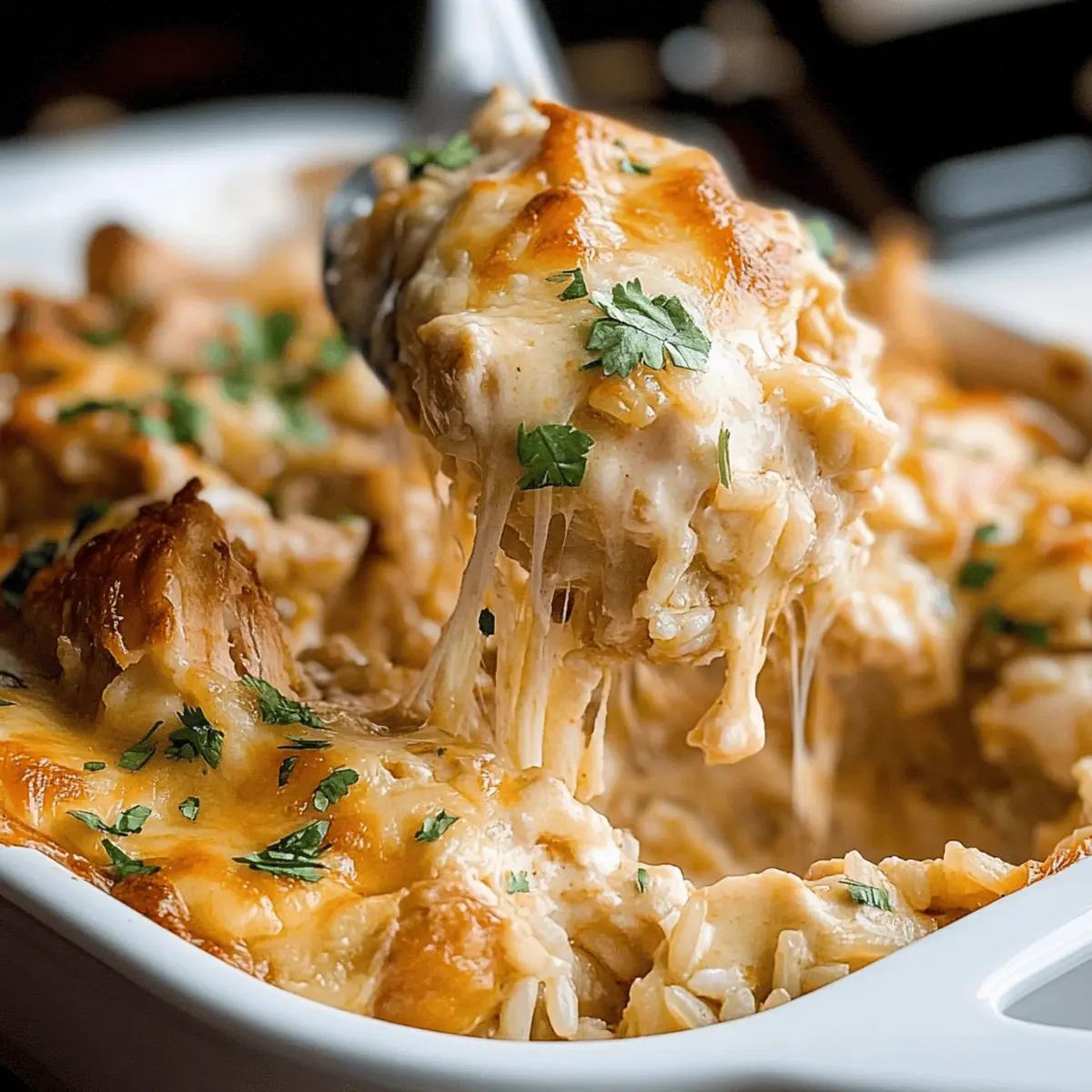 Jump to Recipe Print RecipeThe aroma of melting cheese and seasoned chicken wafts through my kitchen, instantly making me feel at home. This Creamy Chicken and Rice Queso Casserole is a delightful comfort food that warms the soul, especially during those busy weeknights when time is scarce. With just a few simple pantry staples and quick prep, this recipe is the perfect solution for anyone seeking a cheesy, satisfying dinner that doesn’t require hours of cooking. Imagine enjoying a creamy, cheesy dish that not only delights your taste buds but also provides a cozy feeling with every bite. Trust me, you’ll want to keep this recipe handy for those evenings when fast food just won’t cut it! So, are you ready to bring the comforting taste of homemade goodness to your dinner table? Why is this casserole a game-changer? Quick Preparation: This Chicken and Rice Queso Casserole comes together in no time, making it perfect for those busy weeknights. Cheesy Goodness: Bursting with flavor, the creamy queso and seasoned chicken create a delightful, mouthwatering experience. Versatile Dish: Whether swapping chicken for rotisserie or adding your favorite veggies, this casserole suits all tastes! Crowd-Pleaser: Serve it at gatherings or cozy family dinners, and watch everyone come back for seconds! Comforting Texture: With its gooey, melty cheese topping and satisfying rice base, each bite provides ultimate comfort. This dish pairs wonderfully with a side of zesty salad or steamed veggies. Need more dinner inspiration? Check out our delicious Smothered Chicken Rice or try the Cheesy Steak Rice for a change! Chicken and Rice Queso Casserole Ingredients For the Casserole • Olive Oil – Perfect for sautéing the chicken; vegetable oil is a suitable substitute if needed. • Boneless, Skinless Chicken Breasts – Provides essential protein; other chicken cuts may require longer cooking times. • Taco Seasoning – Adds a flavorful kick; both homemade and store-bought options work well. • Dried Parsley – A touch of herbaceous flavor; easily replaced with fresh parsley for added brightness. • Red Pepper Flakes – Offers customizable heat; adjust as desired or omit for a milder dish. • Queso Dip – The creamy base for this casserole; can swap with a homemade cheese sauce if preferred. • Heavy Cream – Adds richness; for a lighter touch, use sour cream or Greek yogurt. • Chopped Green Chiles – Contributes tangy spice; fresh jalapeños can amp up the heat further. • Minced Onion – Deepens the flavor; shallots can be used for a sweeter alternative. • Instant Rice – A quick-cooking base that simplifies prep; any variety of cooked rice can also be used. • Shredded Mexican Cheese Blend – The delicious topping; feel free to swap for cheddar or mozzarella based on preference. • Freshly Chopped Parsley – Optional garnish that adds a pop of color and freshness. This Chicken and Rice Queso Casserole is perfect for transforming ordinary meal times into exciting family gatherings! Step‑by‑Step Instructions for Chicken and Rice Queso Casserole Step 1: Preheat and Prepare the Dish Begin by preheating your oven to 350°F (175°C). While it’s warming, take a 7×11-inch baking dish and spray it generously with cooking spray to prevent sticking. This initial step sets the stage for your creamy Chicken and Rice Queso Casserole and ensures a smooth baking process. Step 2: Sauté the Chicken In a large skillet, heat 1 tablespoon of olive oil over medium-high heat until shimmering. Add the diced chicken and sauté for about 4 minutes, stirring occasionally until the chicken is browned and cooked through. Season the chicken with taco seasoning, dried parsley, and red pepper flakes for a flavorful kick that will elevate the entire casserole. Step 3: Combine the Rice Mixture In a separate mixing bowl, combine 2 cups of cooked instant rice with 1 cup of queso dip, ½ cup of heavy cream, ¼ cup of minced onion, and 1 can of chopped green chiles. Stir the mixture until all ingredients are well combined and creamy. This will form the delicious base of your Chicken and Rice Queso Casserole. Step 4: Layer the Rice Mixture Transfer the rice mixture into the prepared baking dish, spreading it evenly across the bottom. This layer is crucial as it will hold the chicken and cheese, creating that comforting, loaded texture in your casserole. Make sure the mixture is level for even cooking throughout. Step 5: Add the Chicken Evenly distribute the sautéed chicken over the rice mixture, ensuring every bite will be packed with flavor. Carefully sprinkle the chicken pieces across the top, allowing it to blend with the creamy rice base. This layering will create a delicious medley of flavors in your Chicken and Rice Queso Casserole. Step 6: Top with Cheese Sprinkle 1 cup of shredded Mexican cheese blend generously on top of the chicken layer. This will create a gooey, cheesy crust as it bakes. Make sure to cover the chicken thoroughly, as it’s this melty cheese that will tie all the flavors together beautifully. Step 7: Bake to Perfection Place the casserole in the preheated oven and bake for 25 minutes. Keep an eye on it; it’s ready when the cheese is melted and bubbly, forming a lovely golden crust. This final step transforms your casserole into a comforting dish that’s both visually appealing and deliciously satisfying. Step 8: Serve and Garnish Once baked, remove the casserole from the oven and let it sit for a few minutes to cool. Serve hot, garnishing each plate with freshly chopped parsley for a pop of color and freshness. This Chicken and Rice Queso Casserole is now ready to delight your family and friends! Make Ahead Options This Chicken and Rice Queso Casserole is a fantastic dish to prep in advance, saving you time on busy evenings! You can assemble the casserole up to 24 hours ahead; simply prepare it through Step 5 and cover tightly with plastic wrap before refrigerating. For optimal 