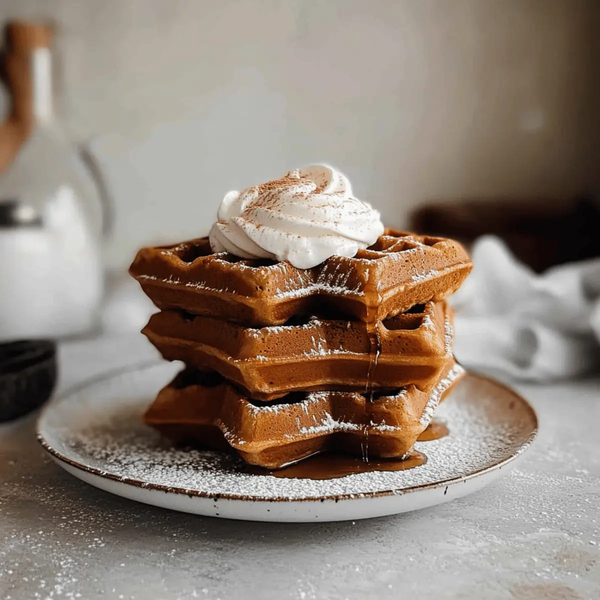 Jump to Recipe Print RecipeAs the aroma of warm spices fills the air, my kitchen transforms into a cozy haven—one where the bustling holiday spirit comes alive with every sizzle. These Christmas Morning Gingerbread Waffles are the perfect way to kick off your festive celebrations, boasting a crispy exterior and a tender, spiced interior. Not only are they a delightful way to enjoy the classic gingerbread flavor, but they also come together quickly, making them ideal for busy mornings when you want something special without the fuss. With hints of molasses and fresh ginger, each bite offers that heartwarming comfort we all crave during the season. So, what’s your favorite way to top off a festive waffle—maple syrup or a dollop of whipped cream? Why Love Christmas Morning Gingerbread Waffles? Cozy, Festive Flavor: These waffles encapsulate the warmth of the holiday season with the rich spices of ginger, cinnamon, and cloves. Quick Prep: With simple steps and minimal fuss, you can whip these up in no time, perfect for bustling holiday mornings. Delightful Texture: Expect a crispy outside and tender, fluffy inside that pairs beautifully with maple syrup or whipped cream. Versatile Toppings: Go traditional or get creative—top with sautéed apples or even a sprinkle of nuts for an added crunch. For more delicious holiday breakfast ideas, check out French Toast Waffles or indulge in some Apple Fritter Bread. Christmas Morning Gingerbread Waffles Ingredients For the Waffle Batter All-Purpose Flour – Provides structure; feel free to substitute with whole wheat flour for added fiber. Granulated Sugar – Adds a touch of sweetness; light brown sugar can enhance the flavor profile. Brown Sugar – Deepens moisture and flavor; dark brown sugar offers a more pronounced molasses taste. Baking Soda – Key for fluffiness; acts as a leavening agent in your waffles. Baking Powder – Works hand-in-hand with baking soda to help the waffles rise. Salt – Elevates the overall flavor; don’t skip this essential ingredient! Ground Ginger – Infuses warmth; fresh ginger can give a more vibrant kick. Ground Cinnamon – Adds comforting sweetness that screams holiday! Ground Cloves – Brings depth to the spice blend, enhancing the gingerbread flavor. Unsalted Butter – Richness and moisture are key; coconut oil is a great dairy-free alternative. Whole Milk – Keeps the batter smooth; swap in almond milk for a non-dairy option. Large Eggs – Binds the ingredients and provides structure. Molasses – Provides that deep gingerbread flavor; honey or maple syrup can substitute but will alter the taste slightly. Freshly Grated Ginger – Introduces a fresh zing; optional for those who prefer a milder flavor. Vanilla Extract – Rounds out the flavor, creating a perfect balance. These Christmas Morning Gingerbread Waffles are sure to warm your heart and cozy up your holiday celebrations! Step‑by‑Step Instructions for Christmas Morning Gingerbread Waffles Step 1: Whisk the Dry Ingredients In a large mixing bowl, combine the all-purpose flour, granulated sugar, brown sugar, baking soda, baking powder, salt, ground ginger, ground cinnamon, and ground cloves. Use a whisk to thoroughly blend the ingredients until evenly mixed. This step ensures that the Christmas Morning Gingerbread Waffles will be light and fluffy, capturing all that warm spice goodness. Step 2: Mix the Wet Ingredients In a separate bowl, melt the unsalted butter and allow it to cool slightly. Then, whisk in the whole milk, large eggs, molasses, freshly grated ginger, and vanilla extract until the mixture is smooth and well combined. This wet mixture enriches the batter, creating a delightful base for your gingerbread waffles. Step 3: Combine Wet and Dry Ingredients Pour the wet mixture into the bowl of dry ingredients, gently stirring with a whisk until just combined. Be careful not to overmix, as this will keep your waffles tender. Allow the batter to rest for about 10 minutes; this lets the flavors meld and contributes to a better texture in your Christmas Morning Gingerbread Waffles. Step 4: Preheat the Waffle Iron While the batter rests, preheat your waffle iron to high heat, according to the manufacturer’s instructions. Lightly spray the iron with non-stick baking spray to ensure easy release once your waffles are cooked. A properly preheated iron is key for achieving that crispy, golden exterior you’re after. Step 5: Cook the Waffles Once the waffle iron is heated, use a large portion scoop to fill the center with batter. Close the lid and cook for about 5 minutes, or until the waffles are deeply browned and crisp. Look for a golden hue on the outside—this visual cue indicates that your Christmas Morning Gingerbread Waffles are ready to be enjoyed! Step 6: Keep Waffles Warm Carefully transfer the cooked waffles to a wire rack placed on a baking sheet in a warm oven set at about 200°F (93°C) to keep them warm. This step helps prevent sogginess as you cook the remaining batter. Repeat the cooking process until all batter is used, enjoying the wonderful aroma filling your kitchen. Step 7: Serve with Toppings Once all the waffles are done, it’s time to plate them up! Serve your warm Christmas Morning Gingerbread Waffles with a drizzle of maple syrup or a dollop of whipped cream for an extra festive touch. Get creative with garnishes, whether it’s a dusting of powdered sugar or fresh fruit—make them your own! Make Ahead Options These Christmas Morning Gingerbread Waffles are perfect for meal prep enthusiasts! You can prepare the batter up to 24 hours in advance—just mix the dry ingredients and keep them in an airtight container, then whisk the wet ingredients (butter, milk, eggs, molasses, ginger, and vanilla) together right before cooking to ensure freshness. This keeps the flavors vibrant while preventing the spices from losing their punch. On the day you want to serve them, simply combine the wet and dry ingredients