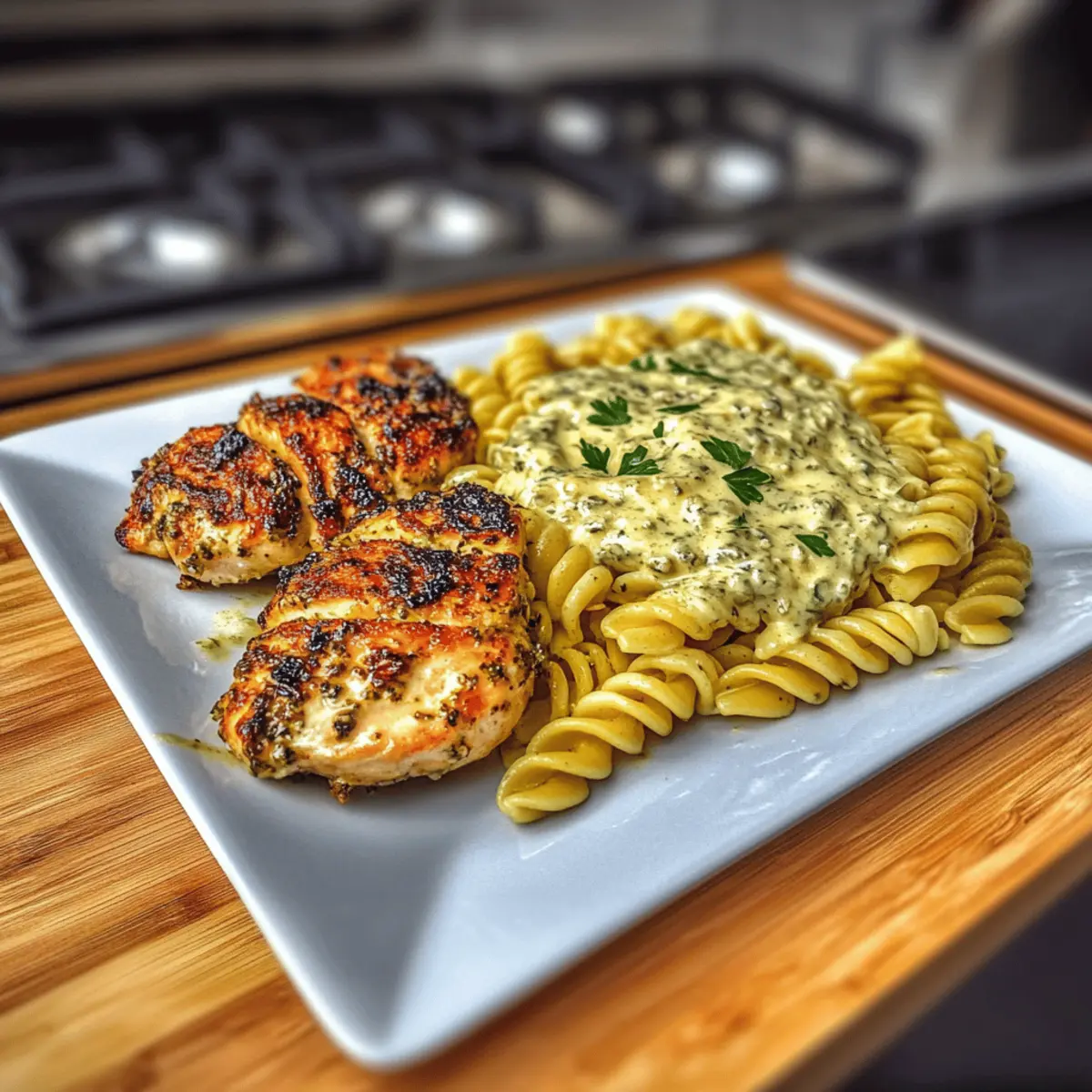 Jump to Recipe Print RecipeAfter a long day, the thought of a creamy, satisfying dinner can be just the comfort we crave. That’s where this 30-Minute Creamy Garlic Parmesan Chicken Pasta steps in, transforming your weeknight meal into a delightful indulgence. Picture golden-brown chicken mingling with al dente pasta, all enveloped in a luscious garlic and Parmesan cream sauce that’s ready in a snap. This dish is not only a time-saver—perfect for those busy evenings—but it also turns any ordinary dinner into a culinary triumph. Plus, the one-pan preparation means less fuss and more fun in the kitchen! What variations will you try—chicken thighs or juicy shrimp? Let’s dive into the recipe! Why Is This Recipe a Must-Try? Simplicity at its Best: The recipe is incredibly straightforward, perfect for home cooks of all skill levels. Bold Flavor: Rich garlic and Parmesan create an indulgent taste that will make your taste buds sing. Quick Cooking Time: Ready in just 30 minutes, it’s the ultimate weeknight hero for busy schedules. One-Pan Wonder: Minimal cleanup means more time enjoying your delicious meal. Versatile Options: Feel free to swap chicken for shrimp or add veggies like spinach for a nutritional boost. With this Creamy Garlic Parmesan Chicken Pasta on your dinner table, you’ll treat your loved ones to a comforting and delicious dish that beats any takeout! Creamy Garlic Parmesan Chicken Pasta Ingredients • Here’s everything you’ll need to create this delectable dish: For the Chicken Chicken Breasts – Source of protein and flavor; substitute boneless, skinless chicken thighs for added juiciness. For the Pasta Twisted Pasta (Fusilli/Penne/Rottini) – Base of the dish providing structure; any short pasta can work. For the Sauce Unsalted Butter – Adds richness to the sauce; can be substituted with olive oil for a lighter option. Fresh Garlic – Enhances the sauce’s aroma and flavor; use roasted garlic for a sweeter taste. Heavy Cream – Creates a velvety texture for the sauce; Greek yogurt can be used for a lighter alternative, though the flavor will change. Chicken Broth – Used for deglazing and thinning the sauce; vegetable broth is a suitable substitute. Freshly Grated Parmesan Cheese – Delivers a smooth, rich flavor; use a microplane for the best melting results—avoid pre-shredded as it doesn’t melt as well. Italian Seasoning – Adds a blend of herbs; oregano, basil, or thyme can be used as substitutes. Red Pepper Flakes (optional) – Provides a touch of heat; you can omit or reduce to suit your taste. For Seasoning and Garnish Salt and Black Pepper – Essential seasoning to enhance flavor. Fresh Parsley – For garnish, adds color and freshness; basil or chives can also be used. This Creamy Garlic Parmesan Chicken Pasta is not just a meal; it’s a celebration of flavors that you can whip up in no time! Step‑by‑Step Instructions for Creamy Garlic Parmesan Chicken Pasta Step 1: Cook the Pasta Begin by bringing a large pot of salted water to a rolling boil over high heat. Add your chosen twisted pasta, such as fusilli or penne, and cook until al dente, about 8-10 minutes. When ready, reserve ½ cup of the pasta water for later use, then drain the pasta in a colander and set aside while you prepare the sauce. Step 2: Sear the Chicken While the pasta cooks, pat the chicken breasts dry with paper towels to ensure a nice sear. Season both sides with salt and black pepper. In a large skillet, heat 1 tablespoon of unsalted butter over medium heat. Add the chicken and cook for 3-4 minutes per side until golden brown and cooked through, reaching an internal temperature of 165°F. Remove from the skillet and set aside to rest. Step 3: Make the Garlic Sauce In the same skillet used for the chicken, melt the remaining butter over medium heat. Add minced fresh garlic and optional red pepper flakes, sautéing for 30-60 seconds until fragrant but not browned. Pour in a splash of chicken broth to deglaze the pan, scraping up any flavorful bits. Then, stir in heavy cream and Italian seasoning, allowing it to simmer for about 2-3 minutes until slightly thickened. Step 4: Incorporate the Cheese Reduce the heat to low and gradually whisk in the freshly grated Parmesan cheese, stirring until it melts and combines smoothly into the creamy sauce. This step is crucial for achieving the signature creamy texture of your Creamy Garlic Parmesan Chicken Pasta, so take your time to ensure it’s perfectly blended. Step 5: Combine Chicken and Pasta Return the seared chicken to the skillet, slicing it into bite-sized pieces if desired. Add the drained pasta, tossing gently to coat everything in the velvety sauce. To achieve your preferred consistency, gradually add reserved pasta water until you have a decadent, clingy sauce that hugs the pasta beautifully. Step 6: Serve and Garnish Once everything is well combined and heated through, taste and adjust seasoning with more salt and black pepper as needed. Serve the Creamy Garlic Parmesan Chicken Pasta hot, garnished with freshly chopped parsley for a pop of color and freshness. Make Ahead Options Preparing your Creamy Garlic Parmesan Chicken Pasta ahead of time is a brilliant way to save precious moments on busy weeknights! You can cook the pasta and store it in an airtight container for up to 3 days. The sauce can also be made a day in advance and refrigerated; just keep it separate from the pasta to prevent it from absorbing too much moisture. When you’re ready to serve, gently reheat the sauce over low heat, adding a splash of chicken broth to restore its creamy consistency, then combine with the pasta and any pre-cooked chicken. This way, you’ll enjoy rich, restaurant-quality flavors with minimal effort! What to Serve with Creamy Garlic Parmesan Chicken Pasta Imagine gathering your loved ones around the table, dishes of delightful sides enhancing the creamy goodness of your pasta. Garlic Bread: A classic companion,