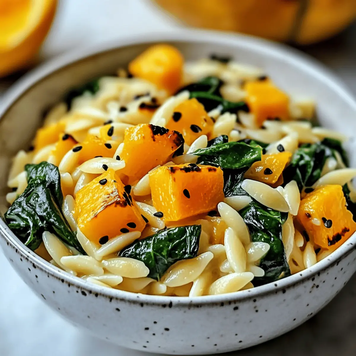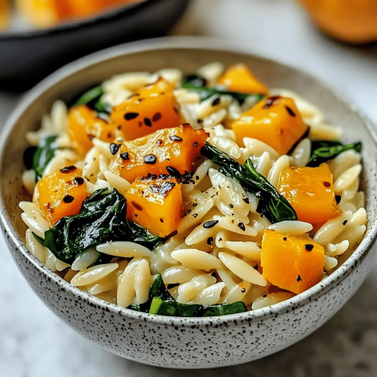 Jump to Recipe Print RecipeThe gentle aroma of roasted butternut squash mingling with earthy spices can transport anyone to a cozy kitchen on a chilly evening. This Creamy Orzo with Roasted Butternut Squash and Spinach recipe was born from a desire to create a comforting dish that not only warms the heart but also tickles the taste buds. Perfect for a family gathering or a weeknight dinner when time is tight, this vegetarian delight is a one-pot meal that offers both creamy texture and rich flavor. With the added bonus of being packed with nutrients from fresh spinach and the sweet notes of squash, it’s a wholesome choice that leaves you feeling satisfied without the guilt of fast food. So, are you ready to experience the ultimate comforting hug in a bowl? Why is This Recipe a Must-Try? Comforting Warmth: This Creamy Orzo with Roasted Butternut Squash and Spinach envelops you in a cozy flavor that’s perfect for any chilly evening. Easy to Prepare: With just a few simple steps, you can whip up a delicious dish without fussing over complicated techniques. Nutritious Goodness: Packed with vitamins from the squash and spinach, this meal is not only comforting but also a healthy choice. Versatile Options: Feel free to experiment with seasonal vegetables or different cheeses to suit your taste, just like in my creamy Salmon Spinach Pasta for extra inspiration! Crowd-Pleasing Appeal: Whether for a family gathering or a weeknight treat, this dish is sure to impress anyone at your table. Creamy Orzo with Roasted Butternut Squash Ingredients • A delightful blend of flavors! For the Butternut Squash Butternut Squash – Vegetable base providing sweetness; substitute with zucchini for a different flavor. Olive Oil – Cooking medium that enhances flavor; opt for extra virgin for a richer taste. Salt and Black Pepper – Essential seasoning to enhance all flavors; adjust according to taste preferences. For the Orzo Dish Orzo Pasta – Base ingredient that creates a creamy, hearty dish; small pasta shapes like ditalini are a great alternative. Vegetable Broth – Liquid base that adds depth of flavor; can use water for a lighter version. Butter – Adds richness and depth; substitute with plant-based butter for a vegan option. Garlic (minced) – Aromatic element that elevates flavor; fresh garlic offers the best results. Parmesan Cheese – Adds creaminess and a savory finish; nutritional yeast is a great vegan alternative. Heavy Cream – Contributes to the dish’s creamy texture; cream cheese can provide a richer alternative. For the Fresh Elements Baby Spinach – Fresh element providing color and nutrients; feel free to use kale or other leafy greens. Dried Thyme (optional) – Adds earthy flavor notes; fresh thyme works well as a substitution. Red Pepper Flakes (optional) – Adds heat to balance the dish; adjust to taste based on preference. This Creamy Orzo with Roasted Butternut Squash and Spinach promises to be a comforting, nutrient-packed meal perfect for any occasion! Step‑by‑Step Instructions for Creamy Orzo with Roasted Butternut Squash and Spinach Step 1: Roast the Butternut Squash Preheat your oven to 400°F (200°C). In a mixing bowl, toss the diced butternut squash with olive oil, salt, and black pepper until evenly coated. Spread the seasoned squash on a baking sheet in a single layer and roast for 25–30 minutes, turning halfway through, until the squash is tender and golden brown around the edges. Step 2: Cook the Orzo In a medium saucepan, melt butter over medium heat. Once melted, add minced garlic and sauté for about 1 minute until fragrant, but not browned. Then, add the orzo pasta to the pan, toasting it while stirring occasionally for about 2 minutes until it starts to turn a golden color, enhancing the Creamy Orzo with Roasted Butternut Squash and Spinach flavor. Step 3: Add Broth and Simmer Pour in the vegetable broth into the saucepan with the toasted orzo. Bring the mixture to a gentle simmer and allow it to cook for 10–12 minutes. Stir occasionally until the orzo is al dente and most of the liquid has been absorbed, ensuring the pasta has a creamy consistency that aligns perfectly with the dish’s name. Step 4: Make It Creamy Once the orzo is cooked, reduce the heat to low and stir in the grated Parmesan cheese and heavy cream. Fold in the chopped spinach and cook for an additional 1–2 minutes until the spinach wilts and the mixture becomes creamy, creating the rich texture characteristic of this Creamy Orzo with Roasted Butternut Squash and Spinach dish. Step 5: Combine Ingredients Gently fold the roasted butternut squash into the creamy orzo mixture. Season to taste with additional salt, pepper, dried thyme, or red pepper flakes if desired. This step ensures all flavors meld together beautifully, enhancing the comforting essence of your Creamy Orzo with Roasted Butternut Squash and Spinach. Step 6: Serve and Garnish Ladle the creamy orzo into bowls, garnishing with extra Parmesan cheese or a drizzle of olive oil for added richness. Serve warm, allowing each bite to showcase the delightful combination of flavors and textures in your Creamy Orzo with Roasted Butternut Squash and Spinach. What to Serve with Creamy Orzo with Roasted Butternut Squash and Spinach Imagine a cozy dinner table, aromatic dishes enticing everyone as they gather for warmth and camaraderie on a chilly evening. Crispy Garlic Bread: The crunchy texture of garlic bread enhances the creaminess of your dish, making for a delightful contrast with every bite. Simple Green Salad: A fresh salad with mixed greens, cherry tomatoes, and a light vinaigrette provides a refreshing palate cleanser between the rich orzo. Roasted Brussels Sprouts: These caramelized bites add a nutty flavor that complements the butternut squash, creating a beautifully balanced meal. Savory Herb Focaccia: Soft yet crispy focaccia, infused with rosemary, pairs perfectly, allowing you to soak up the creamy goodness o