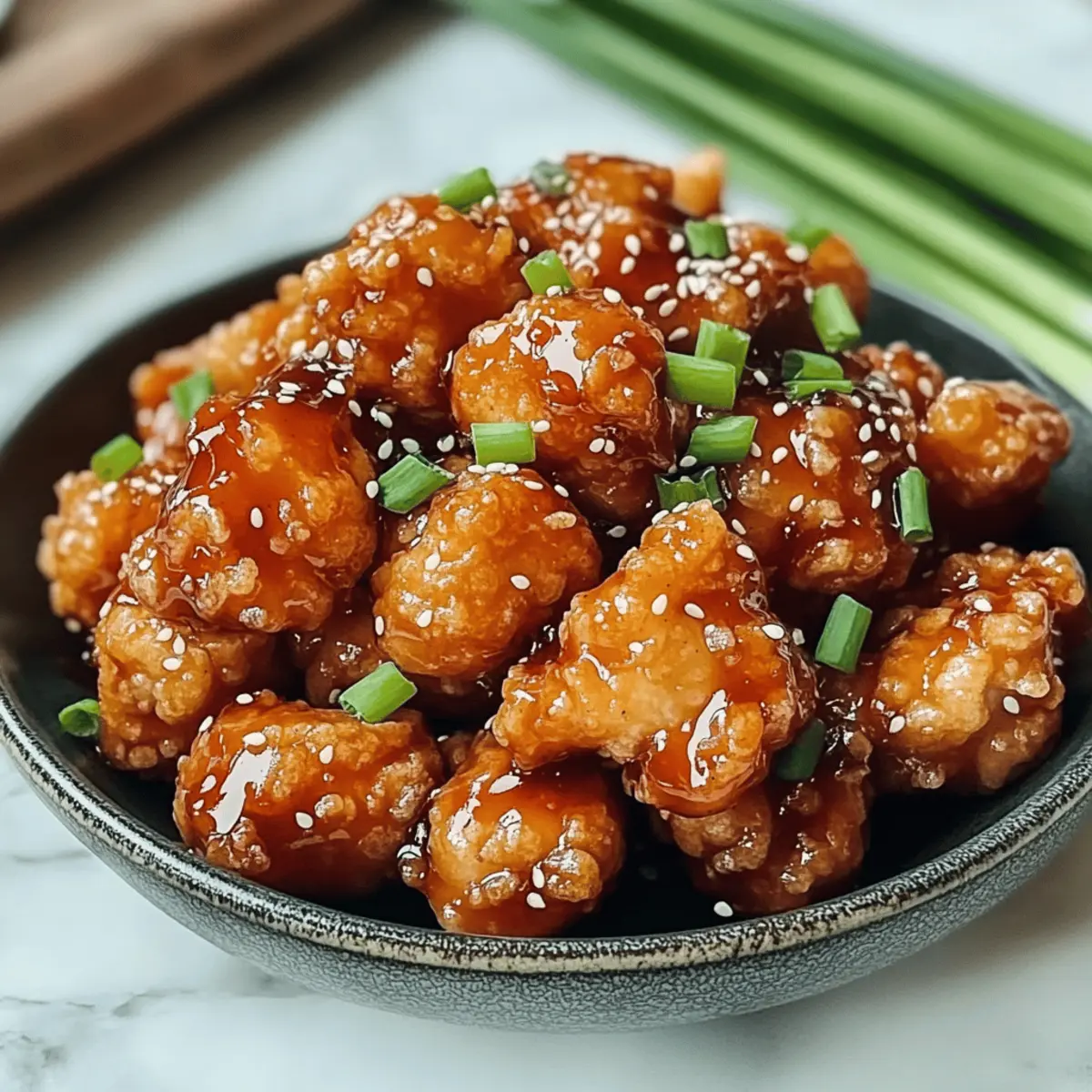 5. Add fried chicken to the saucepan, tossing gently until evenly coated with the glaze. Garnish with sesame seeds and chopped green onions. Serve immediately over steamed rice.