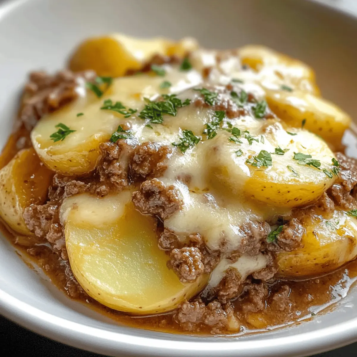 This Crockpot Hamburger Potato Casserole is an easy, comforting meal that brings family together with layers of tender potatoes, savory beef, and creamy sauce.