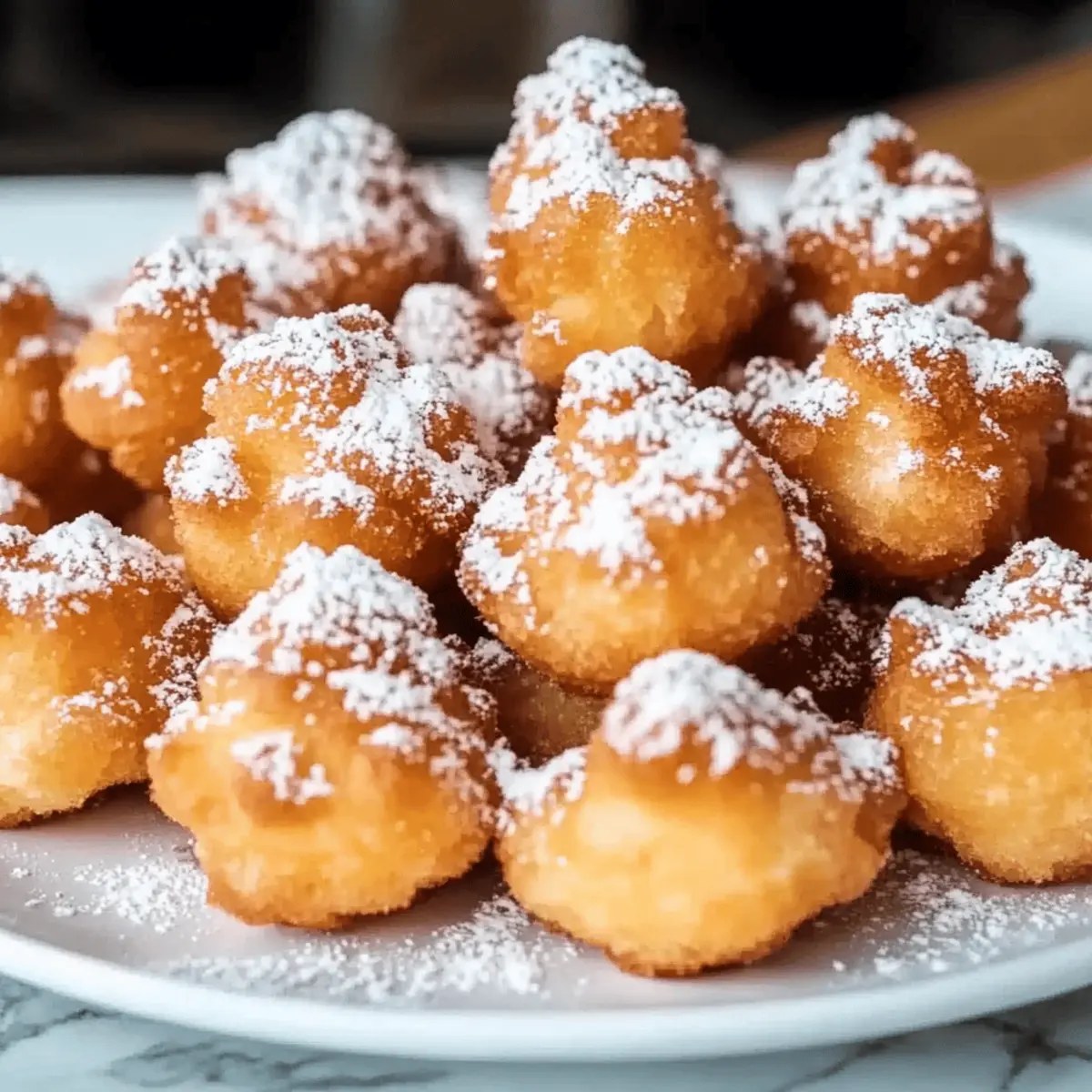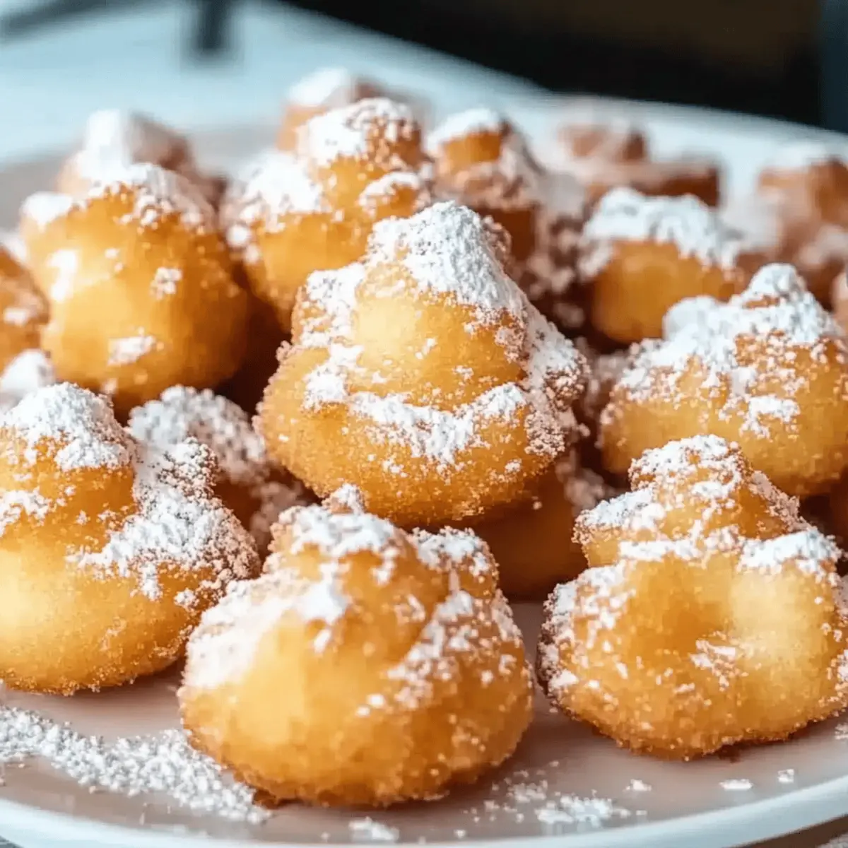 Jump to Recipe Print RecipeThe sizzling sound of batter meeting hot oil instantly transports me back to summer fairs, where the air is thick with the aroma of sugary treats. Today, I’m bringing a slice of that joy to your kitchen with these delightful 15-Minute Funnel Cake Bites. Easy to make and perfectly crispy, they’re the ultimate quick snack for anyone looking to indulge without the hassle of a full carnival experience. Just imagine sinking your teeth into these fluffy bites, dusted with powdered sugar, and satisfying that sweet tooth in mere minutes! Whether you’re hosting a gathering or just treating yourself to a little nostalgia, these funnel cake bites are sure to steal the spotlight. Ready to whip up some magic? Why Are Funnel Cake Bites Irresistible? Quick and Easy: In just 15 minutes, you can whip up a delightful treat that rivals those found at summer fairs. Crispy Perfection: Each bite is golden brown on the outside and fluffy on the inside, providing that perfect carnival crunch. Versatile Toppings: Customize your bites with chocolate sauce, whipped cream, or fresh berries for an added touch of sweetness. Crowd-Pleasing Treat: Ideal for parties or casual get-togethers, these bite-sized wonders will have guests coming back for more. Nostalgic Flavor: Enjoy the classic taste of funnel cakes at home, bringing back memories of fun-filled days at the fair. If you’re looking for more quick and exciting snacks, don’t miss out on our Soft Pretzel Bites or treat yourself to a slice of Bee Sting Cake! Funnel Cake Bites Ingredients • Create the perfect carnival treat with these simple ingredients! For the Batter All-Purpose Flour – Provides structure and a solid base for the funnel cake bites; can substitute with gluten-free flour if needed. Baking Powder – Acts as a leavening agent to ensure fluffy bites; no substitutions needed here. Ground Cinnamon – Adds a warm, comforting flavor; nutmeg can be used as a delightful substitute. Ground Nutmeg – Enhances sweetness and adds a nutty depth; omit if unavailable or substitute with allspice. Salt – Balances the sweetness, enhancing all the flavors; no substitutes needed. Milk – Adds moisture and richness; for a dairy-free version, almond or soy milk works great! Granulated Sugar – Sweetens the batter perfectly; consider coconut sugar for a lower glycemic index. Large Eggs – Adds moisture and helps bind the batter; use aquafaba as a vegan alternative (3 tablespoons = 1 egg). Pure Vanilla Extract – Boosts the flavor profile with sweetness; imitation vanilla can work in a pinch. Vegetable Oil – Crucial for frying to achieve that classic crispy texture; can use canola or peanut oil instead. For Dusting Powdered Sugar – Adds a finishing touch of sweetness and a beautiful presentation; feel free to experiment with flavored sugars! Indulge in these delectable Funnel Cake Bites, ready to satisfy your cravings in just 15 minutes! Step‑by‑Step Instructions for Funnel Cake Bites Step 1: Prepare the Batter Start by beating 2 large eggs in a mixing bowl until they’re foamy, which should take about 1 minute. Next, combine the beaten eggs with 1 cup of milk and 1 teaspoon of pure vanilla extract, whisking until well blended. This wet mixture will give your Funnel Cake Bites a rich flavor, so make sure it’s smooth and evenly combined before moving on. Step 2: Combine Dry Ingredients In a separate bowl, whisk together 1 cup of all-purpose flour, 2 teaspoons of baking powder, 1 teaspoon of ground cinnamon, 1/4 teaspoon of ground nutmeg, 1/4 teaspoon of salt, and 1/4 cup of granulated sugar. Mix these dry ingredients thoroughly until there are no lumps. This step ensures that your Funnel Cake Bites will have a consistent texture and taste, so take your time to blend them evenly. Step 3: Make the Batter Gradually add the wet mixture into the bowl of dry ingredients, stirring gently with a spatula or whisk. Continue mixing until the batter is smooth and well incorporated, which should take about 1-2 minutes. You want it to be thick but pourable. This batter will be the base of your delightful Funnel Cake Bites, filling them with fluffy goodness! Step 4: Fry the Bites In a deep pot, heat vegetable oil to 375°F (190°C). Use a thermometer to ensure the oil reaches the right temperature for frying. Once hot, carefully drop spoonfuls of the batter into the oil using a cookie scoop or tablespoon. Fry each batch for about 1-2 minutes per side or until they turn a beautiful golden brown. Watch closely, as they can cook quickly! Step 5: Drain and Dust Using a slotted spoon, remove the funnel cake bites from the hot oil and place them on a plate lined with paper towels. Allow them to drain for a minute. While they’re still warm, generously dust the bites with powdered sugar, ensuring they get a delightful sweet coating that adds the finishing touch to your tasty treats. Step 6: Serve Funnel Cake Bites are best served warm, so gather your friends and family for a delightful treat! Arrange them on a fun platter and consider offering dipping sauces like chocolate or strawberry jam. These delicious bites are perfect for sharing at parties or simply enjoying as a quick snack at home! How to Store and Freeze Funnel Cake Bites Room Temperature: Store funnel cake bites in an airtight container for up to 1 day. Keep them at room temperature to maintain their crispy texture. Fridge: If you have leftovers, place them in an airtight container in the fridge for up to 3 days. Reheat in the oven for a few minutes to restore some crispiness. Freezer: For longer storage, freeze funnel cake bites in a single layer on a baking sheet until solid, then transfer to a freezer bag. They’ll keep well for up to 2 months. Reheating: To reheat frozen bites, bake at 375°F (190°C) until heated through and crispy, about 5-7 minutes. Enjoy the delightful taste of funnel cake bites whenever the craving hits! Expert Tips for Funnel Cake Bites Perfect T