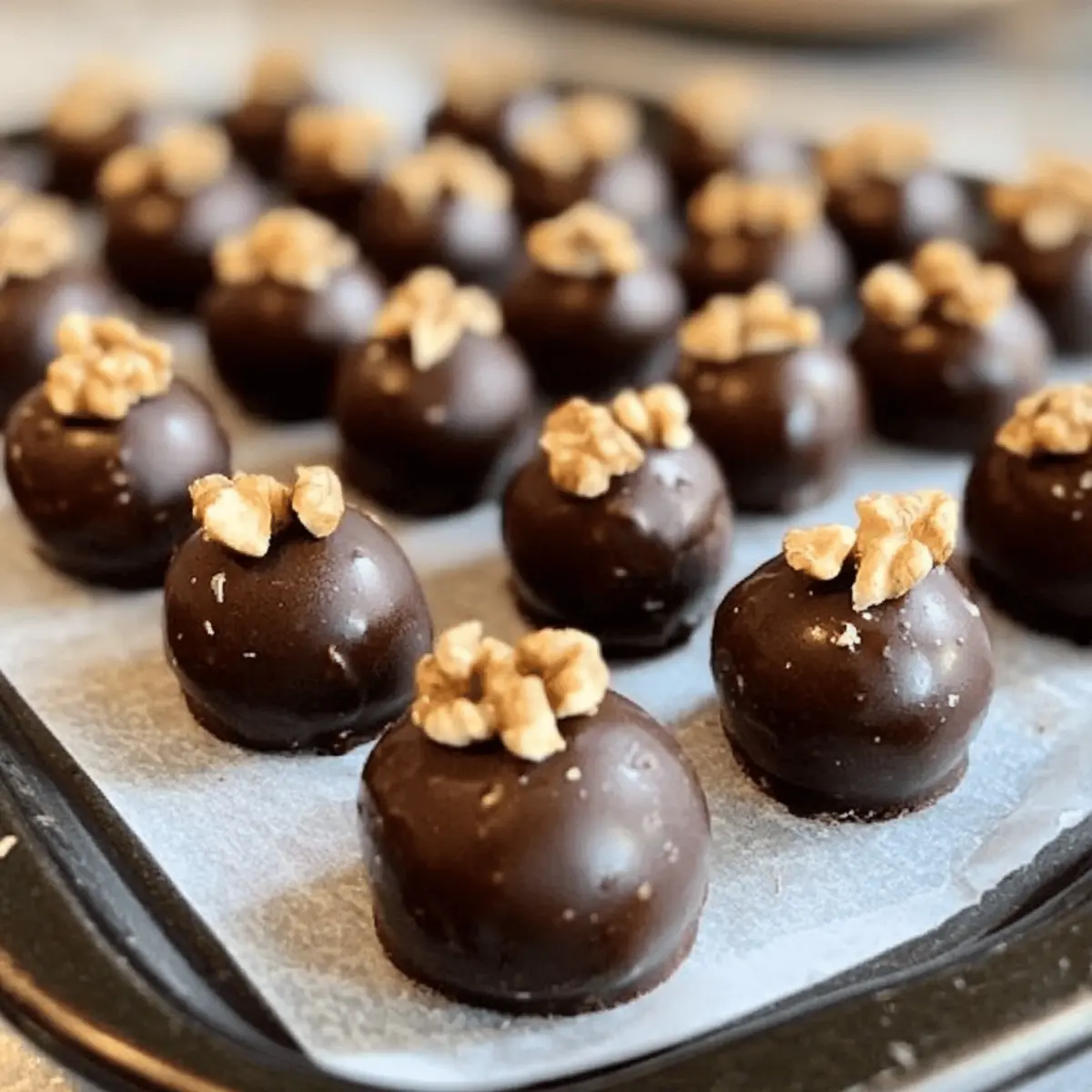 Jump to Recipe Print RecipeAs I stood in my kitchen filled with the enticing aroma of melting chocolate and warm maple essence, I was reminded of the joy that homemade treats can bring during the holidays. Today, I’m excited to share my recipe for Maple Balls—a delightful twist on traditional Buckeyes. These candies offer a perfect balance of sweet and nutty flavors, making them an ideal dessert for festive gatherings or cozy nights in. With simple ingredients and a straightforward preparation process, you can whip up this seasonal favorite without the fuss. Not only are these Maple Balls a treat that will enchant your family and friends, but they also make for a sweet gift beautifully packaged in tins. Ready to elevate your holiday baking? Let’s dive into the world of Maple Balls! Why Are Maple Balls So Irresistible? Delightfully sweet and nutty, these Maple Balls bring a festive twist to traditional candy, making them a holiday favorite. Simple to make, this no-bake recipe requires minimal time and effort, perfect for busy bakers. Creamy interior paired with a chocolate coating offers a heavenly contrast that will please any sweet tooth. Customizable with different nuts or flavors, they can easily be tailored to your palate. Whether served at a holiday party or packaged as gifts, these confections are sure to impress. Don’t forget to check out other delightful treats like our Baked Arancini Balls and Cheesecake Protein Balls for more festive inspiration! Maple Balls Ingredients • Get ready to sweeten your holidays! For the Base Sweetened Condensed Milk – Provides a creamy base and inherent sweetness; no direct substitution recommended for texture. Butter – Adds richness and helps bind the ingredients; unsalted butter is preferred for control over salt content. Vanilla Extract – Enhances flavor profile with aromatic warmth; use pure vanilla extract for the best taste. Maple Extract – Imparts a strong maple flavor, crucial for the recipe; if unavailable, use additional maple syrup for similar results. Maple Syrup – Adds sweetness and moisture; always opt for real maple syrup for authentic flavor. Salt – Balances sweetness and enhances overall flavor; omit if using salted butter. Powdered Sugar – Acts as the primary sweetener and thickening agent; sift before measuring to achieve the desired consistency. Chopped Walnuts – Offers texture and nuttiness; can substitute with pecans or almonds for a different flavor profile. For the Coating Chocolate Chips – Forms the outer coating for richness; dark or semi-sweet chocolate works best, and consider dairy-free options for variations. With these delightful ingredients, you’re on your way to making Maple Balls that are sure to brighten up any festive table! Step-By-Step Instructions for Maple Balls Step 1: Mix Base In a large mixing bowl or stand mixer, combine 1 can of sweetened condensed milk, 1/2 cup of softened unsalted butter, 1 teaspoon of vanilla extract, 1 teaspoon of maple extract, and 1/4 cup of maple syrup. Beat together on medium speed until the mixture is smooth and fully blended, typically around 2-3 minutes. The creamy base will have a rich, sweet aroma that signals it’s ready for the next step. Step 2: Incorporate Dry Ingredients Gradually add 4 to 5 cups of sifted powdered sugar, sprinkling in about 1/2 cup at a time while mixing on low speed. Continue mixing until a dough-like consistency forms, which should take about 4-5 minutes. For added texture, fold in 1/2 cup of chopped walnuts, ensuring they are evenly distributed throughout the Maple Balls mixture. Step 3: Chill Dough If the mixture feels sticky, cover the bowl with plastic wrap and refrigerate for at least 30 minutes to allow it to firm up. This chilling time is essential for shaping the Maple Balls, making it easier to roll the dough without sticking to your hands. You’ll know it’s ready when it holds its shape without flattening. Step 4: Shape Candies Once the dough is chilled, scoop out portions and roll them into small balls, roughly 1 inch in diameter. Place these shaped balls on a parchment-lined baking sheet, ensuring they are spaced apart. The tactile feel of the rolled candies should be smooth and slightly firm, inviting you to continue this delightful process. Step 5: Chill After shaping all the balls, refrigerate or freeze them for another 30 minutes until firm. This step is crucial for ensuring the Maple Balls maintain their shape when dipped in chocolate. You’ll notice they become more solid, making your candy-making experience much smoother. Step 6: Melt Chocolate While the Maple Balls chill, melt 2 cups of chocolate chips using a microwave set to 50% power in 30-second intervals, stirring in between. Alternatively, prepare a double boiler for a gentler approach. Continue until the chocolate is fully melted and smooth, which should take about 1-2 minutes. This glossy melted chocolate will provide a lovely coating for your Maple Balls. Step 7: Coat Balls Using a fork, dip each chilled Maple Ball into the melted chocolate, ensuring an even coat. Allow any excess chocolate to drip back into the bowl before placing them back on the parchment-lined baking sheet. Repeat the process until all Maple Balls are coated, creating a delightful outer shell. Step 8: Set Let the chocolate-coated Maple Balls cool at room temperature, or place them in the refrigerator to speed up the setting process. Allow about 30-45 minutes for the chocolate to harden fully. Once set, your Maple Balls will present a beautiful, shiny finish, ready to bring joy to your festive celebrations. Tips for the Best Maple Balls Chill Time Matters: Allow enough chilling time between steps to ensure the dough and chocolate set properly, preventing any sticking or melting mishaps. Use Quality Ingredients: Opt for real maple syrup and pure vanilla extract; these will significantly enhance the flavor of your Maple Balls. Avoid Sticky Dough: If your dough is sticky 