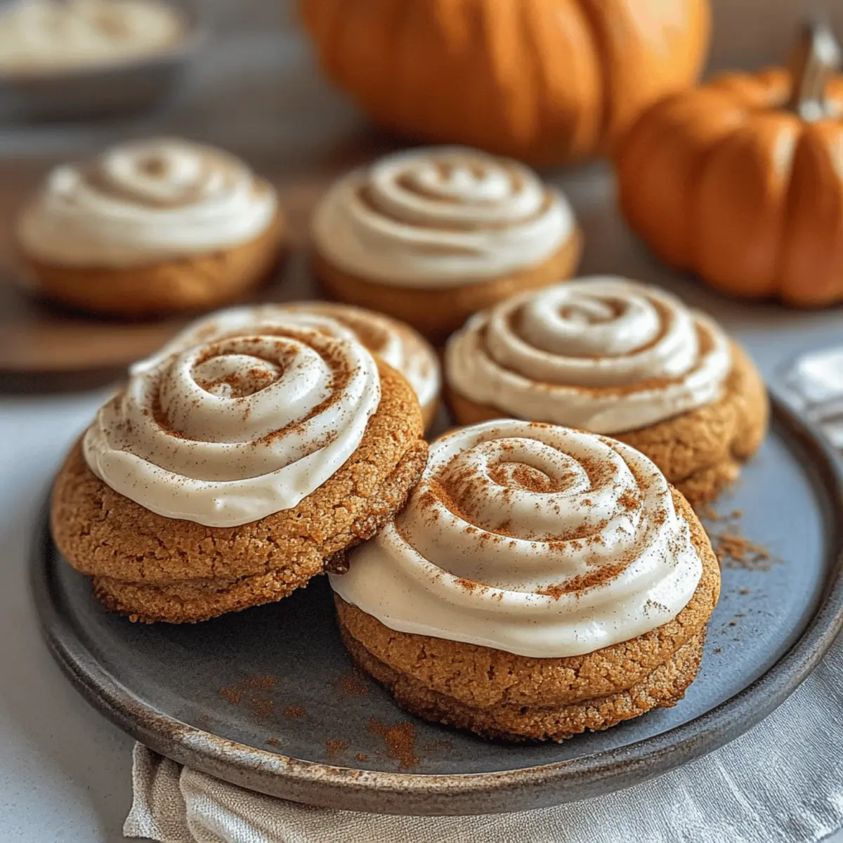 Jump to Recipe Print RecipeAs the leaves turn golden and the air fills with a crispness, it’s the perfect time to indulge in the warm, inviting flavors of autumn. These Soft Pumpkin Cookies with Cream Cheese Frosting are my go-to treat when the chill sets in. Not only are they incredibly easy to whip up, but they also serve as a delightful way to bring a smile to friends and family gathered around the kitchen. Imagine biting into a pillowy cookie kissed with fragrant spices, all topped with a luscious cream cheese frosting. You’ll be surprised at how quickly they disappear! Whether you’re hosting a cozy gathering or simply craving a sweet snack, these pumpkin cookies are sure to be a seasonal hit. Ready to bake up some joy in your kitchen? Let’s get started! Why Are These Cookies So Irresistible? Soft and Chewy: These cookies have a perfect texture that melts in your mouth, making every bite a delightful experience. Effortless Baking: With straightforward steps, even novice bakers can create these delicious treats, ensuring everyone feels like a pro in the kitchen. Bursting with Flavor: They are infused with warm spices like cinnamon and nutmeg, evoking the essence of fall with each taste, just like a classic pumpkin pie. Versatile Treats: Feel free to mix in chocolate chips or different nuts to customize your cookies, making them uniquely yours. Perfect for Gatherings: Whether served at a holiday party or an afternoon coffee break, these cookies are sure to impress guests, just like my favorite Brown Sugar Cookies. Indulge in this cozy autumn delight and transform your kitchen into a warm, welcoming space! Pumpkin Cookies Ingredients • For those eager to bake these delightful treats, here’s what you’ll need: For the Cookies All-Purpose Flour – Provides the structure; a gluten-free blend can be used for those with dietary needs. Baking Soda – Acts as a leavening agent; ensure freshness for the best rise. Ground Cinnamon – Infuses warmth and flavor; feel free to adjust the amount for a bolder spice profile. Nutmeg – Adds a sweet and nutty essence; can be substituted with allspice if necessary. Cloves – Deepens the autumn flavor; just a pinch goes a long way! Salt – Enhances all the sweet flavors; it’s essential for balance in desserts. Unsalted Butter – Contributes moisture and richness; replace with vegan butter for a dairy-free option. Granulated Sugar – Sweetens the dough; for a deeper flavor, consider half brown sugar and half granulated. Pumpkin Puree – The star ingredient that adds both moisture and flavor; avoid using pumpkin pie filling. Large Egg – Helps bind the ingredients together; for a vegan choice, use a flax egg instead. Vanilla Extract – Brings a warm aroma; opt for pure extract for the best flavor. For the Cream Cheese Frosting Cream Cheese – Offers creaminess and tanginess; vegan cream cheese can be swapped in for a dairy-free version. Powdered Sugar – Sweetens the frosting; adjust to fit your personal sweetness preference. Milk (or Heavy Cream) – Used to achieve the desired consistency; almond or oat milk works well for a dairy-free option. Baking these pumpkin cookies is sure to bring warmth into your kitchen! Enjoy the delightful process! Step‑by‑Step Instructions for Soft Pumpkin Cookies with Cream Cheese Frosting Step 1: Combine Dry Ingredients In a medium bowl, whisk together 2 cups of all-purpose flour, 1 teaspoon of baking soda, 1 tablespoon of ground cinnamon, ½ teaspoon each of nutmeg and cloves, and a pinch of salt. This ensures a uniform blend of flavors. The mixture should be well combined, with no visible lumps. Set aside while you prepare the wet ingredients for your pumpkin cookies. Step 2: Cream Butter and Sugar In a large mixing bowl, beat ½ cup of unsalted butter and 1 cup of granulated sugar together until the mixture is fluffy and light in color, about 3 to 5 minutes using a hand or stand mixer. This step creates a creamy base that will help your cookies be soft and chewy. Step 3: Incorporate Wet Ingredients Add 1 cup of pumpkin puree, 1 large egg, and 1 teaspoon of vanilla extract to the creamed butter and sugar. Mix on medium speed until all ingredients are well blended and smooth, approximately 1 to 2 minutes. This will create a moist batter and infuse your pumpkin cookies with rich flavor. Step 4: Add Dry Mixture Gradually blend the dry flour mixture into the wet ingredients, using a spatula or wooden spoon. Mix just until combined, being careful not to overmix, as this can affect the texture. The dough should be soft and slightly sticky, perfect for those delightfully chewy pumpkin cookies. Step 5: Chill Dough Cover the mixing bowl with plastic wrap or a clean kitchen towel and refrigerate the dough for at least 1 hour, or up to 24 hours. Chilling helps the flavors meld and prevents the cookies from spreading too much during baking, ensuring they maintain a lovely thickness. Step 6: Prepare Oven While the dough chills, preheat your oven to 350°F (175°C) and line two baking sheets with parchment paper. Having the oven ready is crucial for baking your cookies evenly and achieving that perfect golden edge. Step 7: Shape Cookies After the dough has chilled, scoop rounded tablespoons of dough and place them on the prepared baking sheets, leaving about 2 inches between each scoop. This spacing allows the cookies room to spread while baking, resulting in delightful, puffy pumpkin cookies. Step 8: Bake Bake the cookies in the preheated oven for 10 to 12 minutes, or until the edges are golden and the centers appear set but still slightly soft. Keep an eye on them, as overbaking can lead to a drier texture. The aroma of pumpkin spice will fill your kitchen! Step 9: Cool Cookies Remove the baking sheets from the oven and let the cookies cool on the sheets for about 5 minutes. Then, carefully transfer them to a wire rack to cool completely. This step allows the cookies to firm up while still maintaining t