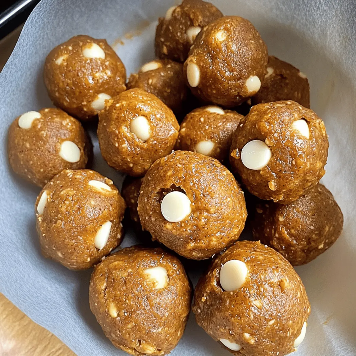 Gently fold in 1/2 cup of mini white chocolate chips into the protein ball mixture. Use a big spoon or spatula to distribute the chocolate evenly, ensuring every bite of your Pumpkin Pie Protein Balls is delightful. This step adds a sweet surprise that perfectly balances the warm spices of fall.
