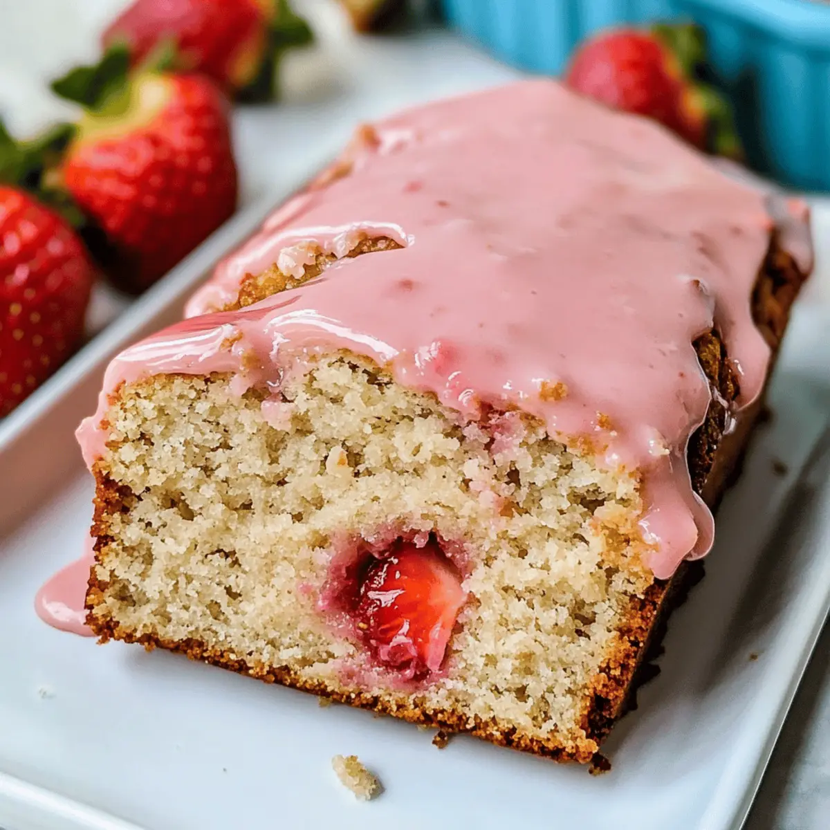 While your bread cools, prepare the glaze by whisking together 3/4 cup of powdered sugar, 1 teaspoon of vanilla extract, optional strawberry extract, and 2-3 tablespoons of heavy cream. Blend until you achieve your desired glaze consistency—adjust with more cream if needed—and add food coloring if you want a vibrant hue.
