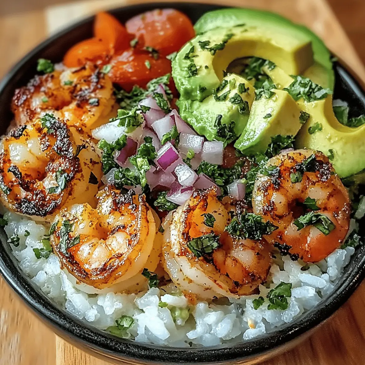 Jump to Recipe Print RecipeThe aroma of sizzling shrimp fills the air, instantly transporting me to sun-kissed beaches and swaying palm trees. These Zesty Lime Shrimp & Coconut Rice Bowls are more than just a meal; they’re a mini-vacation for your taste buds, bursting with the tropical flavors you crave. This dish marries lean protein with creamy coconut rice, making it a quick, nutritious option that fits perfectly into any busy weeknight. Plus, it’s impressively simple, allowing even novice chefs to shine at the dinner table. Ready to dive into a bowl that’s both delicious and satisfying? Let’s get started! Why Will You Crave This Recipe? Elevated Flavors: The zesty lime and rich coconut create a stunning combination that tantalizes the taste buds, making every bite a delight. Quick Preparation: Ideal for busy weeknights, these bowls can be whipped up in about 30 minutes, making it a hassle-free dinner choice. Nutritious and Wholesome: Packed with lean protein from the shrimp and creamy, nutritious coconut rice, this dish keeps you satisfied without the extra calories. Versatile Base: Feel free to swap the shrimp for grilled chicken or tofu to suit your dietary preferences, just like in our Shrimp Avocado Bowls. Crowd-Pleasing Appeal: Not just for family dinners, these bowls are impressive enough for entertaining guests, making you the star chef without breaking a sweat! Dive into these delightful Zesty Lime Shrimp & Coconut Rice Bowls, and let the flavors transport you to a tropical paradise. Zesty Lime Shrimp & Coconut Rice Bowls Ingredients For the Shrimp Marinade Shrimp – The star ingredient providing lean protein; fresh, large shrimp yield the best texture. Garlic – Adds depth and enhances the shrimp’s flavor; fresh garlic is preferable for intensity. Limes (Juice & Zest) – Infuses a vibrant, zesty kick that brightens the dish. Chili Powder – Provides warmth and a hint of spice; adjust according to your heat preference. Paprika – Adds color and mild flavor; smoked paprika can give a deeper taste. Salt and Pepper – Essential for overall seasoning, bringing all the flavors together. Olive Oil – For marinating shrimp and sautéing; can substitute with any cooking oil. For the Coconut Rice Jasmine Rice – The ideal choice for its fragrance and texture; can substitute with basmati if needed. Coconut Milk – Adds creaminess and a rich flavor base; use full-fat for creaminess or light for a lighter version. Water – Necessary for cooking the rice. Sugar (optional) – Balances the flavors in the coconut rice; can be omitted if desired. For Toppings and Garnish Fresh Cilantro – For garnish, adds a fresh taste and vibrant color to the dish. Avocado – Provides creaminess and healthy fats, adding to the dish’s richness. Red Onion – Adds crunch and a pop of color; thinly sliced enhances presentation. Cherry Tomatoes – Offers sweetness and freshness; can substitute with diced bell peppers for variety. This collection of vibrant ingredients ensures your Zesty Lime Shrimp & Coconut Rice Bowls are not only delicious but also a feast for the eyes! Enjoy the tropical escape they provide with every bite. Step‑by‑Step Instructions for Zesty Lime Shrimp & Coconut Rice Bowls Step 1: Marinate the Shrimp In a bowl, combine the fresh shrimp with lime juice, minced garlic, chili powder, paprika, salt, pepper, and olive oil. Toss well to ensure each shrimp is coated in the zesty marinade. Cover the bowl and let it marinate in the refrigerator for at least 15 minutes, allowing the flavors to meld and the shrimp to absorb the vibrant lime essence. Step 2: Prepare Coconut Rice Rinse 1 cup of jasmine rice under cold water until the water runs clear to remove excess starch. In a saucepan, combine the rinsed rice, 1 can of coconut milk, 1 cup of water, a pinch of salt, and optional sugar. Bring the mixture to a gentle boil over medium heat, then reduce to low, cover, and simmer for 15–20 minutes until the rice is tender and the liquid is absorbed. Step 3: Sauté the Shrimp Heat a tablespoon of olive oil in a skillet over medium-high heat. Once the oil shimmers, add the marinated shrimp in a single layer, cooking for 2–3 minutes on each side until the shrimp turn pink and opaque. Avoid overcrowding the pan, which ensures the shrimp sear beautifully rather than steam. Remove from heat and set aside. Step 4: Assemble Bowls To serve your Zesty Lime Shrimp & Coconut Rice Bowls, scoop a generous portion of coconut rice into each bowl as the base. Top with the sautéed shrimp, and then garnish with slices of avocado, red onion, and halved cherry tomatoes for added freshness and crunch. Sprinkle freshly chopped cilantro over the top for a final touch of vibrancy. Step 5: Enjoy! Your colorful Zesty Lime Shrimp & Coconut Rice Bowls are now ready to delight your taste buds! Take in the tropical aromas and savor the creamy rice paired with zesty shrimp and fresh garnishes. Share with family or friends, and relish every bite of this easy yet impressive dish! Make Ahead Options These Zesty Lime Shrimp & Coconut Rice Bowls are perfect for meal prep, saving you time on those busy weeknights! You can marinate the shrimp up to 1 hour in advance; however, to ensure optimal texture, avoid marinating longer. The creamy coconut rice can be prepared and refrigerated for up to 3 days to maintain its deliciousness. Simply reheat it on the stovetop or in the microwave before serving. To keep the garnishes fresh, slice the avocado and onion right before assembling each bowl. When you’re ready to enjoy, sauté the marinated shrimp and assemble the bowls for a quick meal that’s just as flavorful as when freshly made. Expert Tips for Zesty Lime Shrimp & Coconut Rice Bowls Perfect Shrimp Marinade: Ensure shrimp marinate for at least 15 minutes to soak up the zesty lime flavors. Avoid marinating for too long, as it can break down the texture. Rinse the Rice: Rinsing jasmine rice under cold water 
